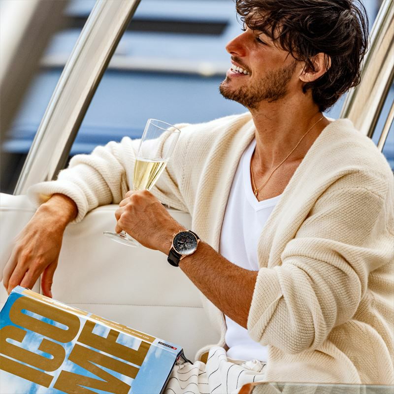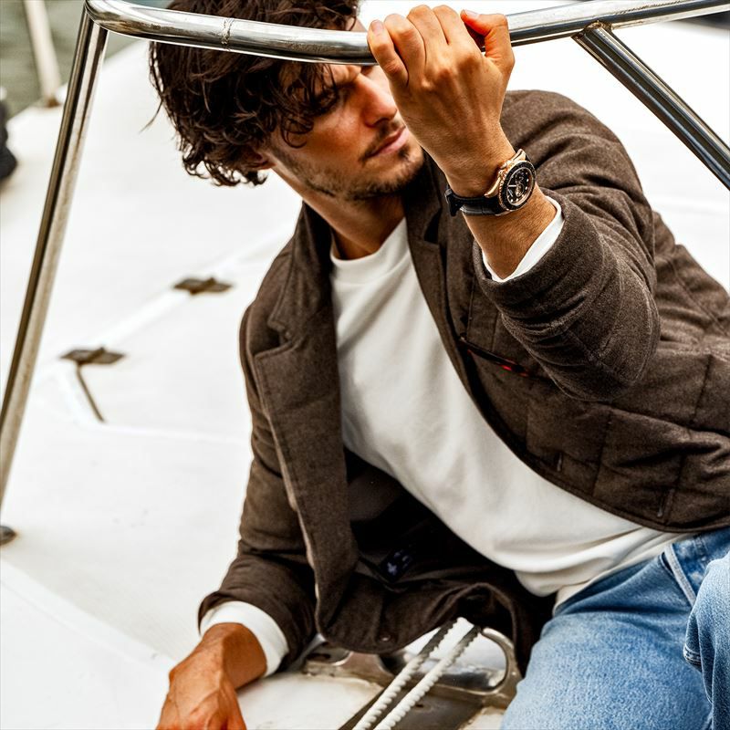 時計の心臓部であるテンプの位置の文字盤をくり抜いたオープンハート仕様により、時を刻む動きを楽しむことができます。またムーブメントには“SEIKO EPSON YN77”を採用。裏蓋もスケルトン仕様。防水性能は30気圧防水。過酷な環境でも進化を発揮する高機能ゆえ、海、川、山のあらゆる水遊びのシーンで活躍することは言わずもがな。針や立体的なインデックスには、日中の光を蓄えて暗闇で発光するN夜行(ルミノーバ)を塗布。昼夜を問わず視認性はしっかり確保。レザーのベルトの裏面はシリコンを圧着させたハイブリッドベルト。軽量かつ撥水、耐久性に優れ、装着感もすこぶる快適。また汗や水によるベルトの変形も防ぐことができるメリットもあります。