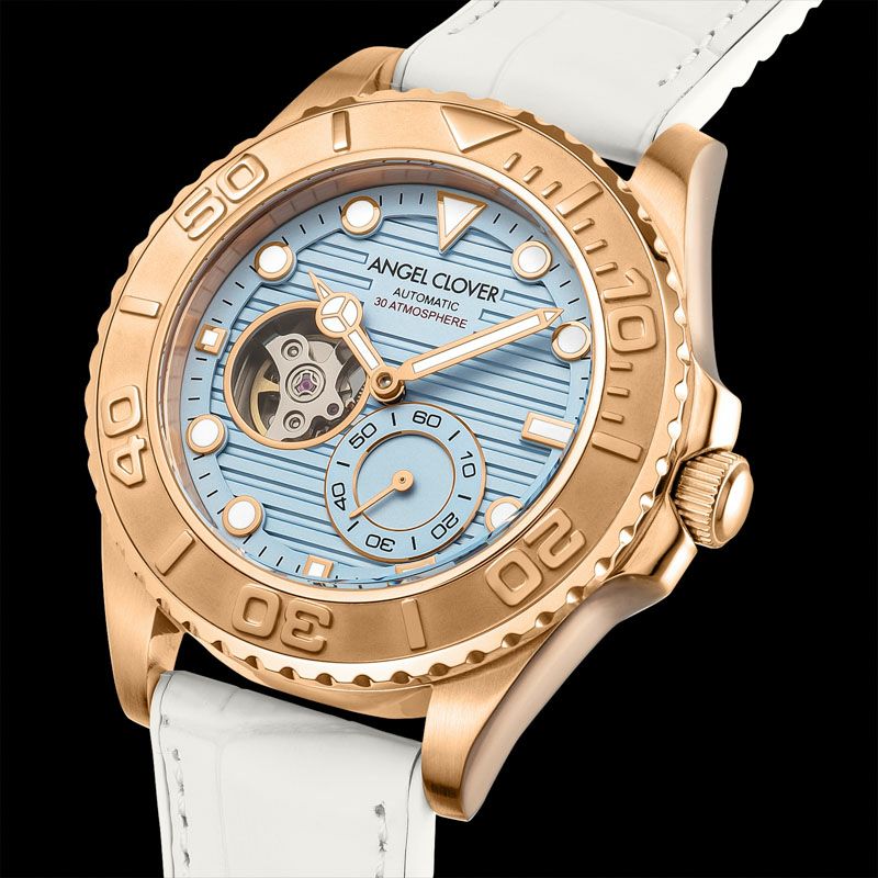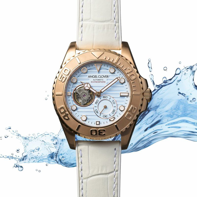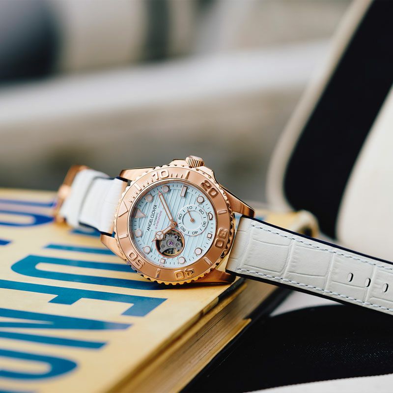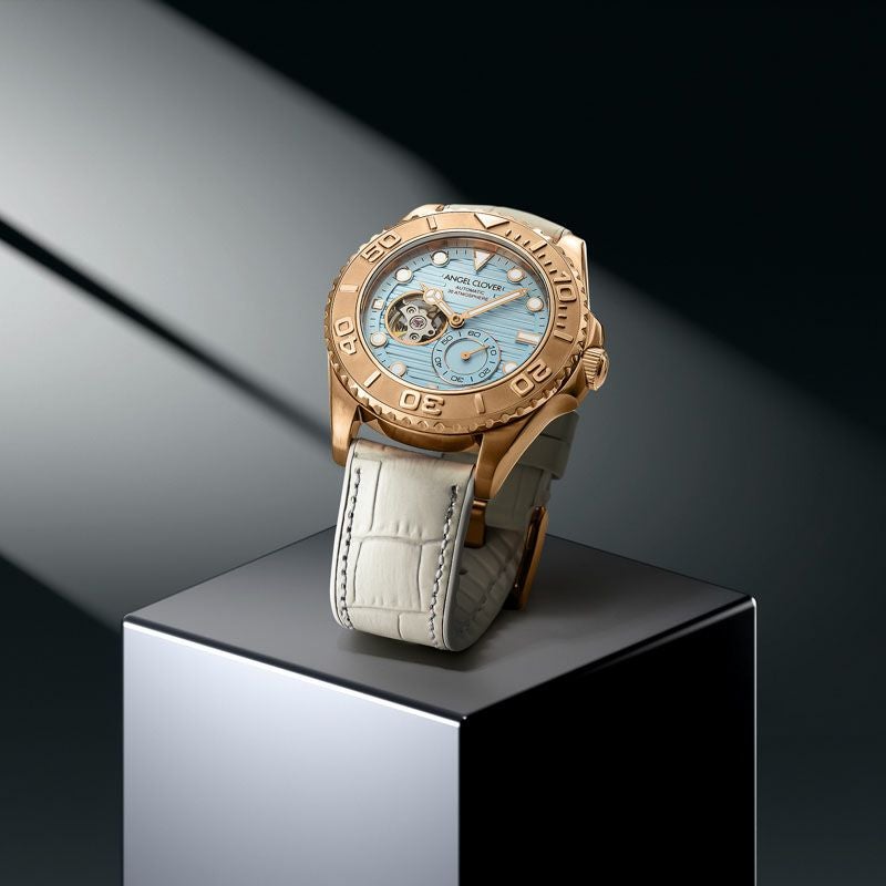 海・空・砂・雲を、絶妙なカラーリングで表現した腕時計は、洗練されたリゾート感が漂う仕上がりに。