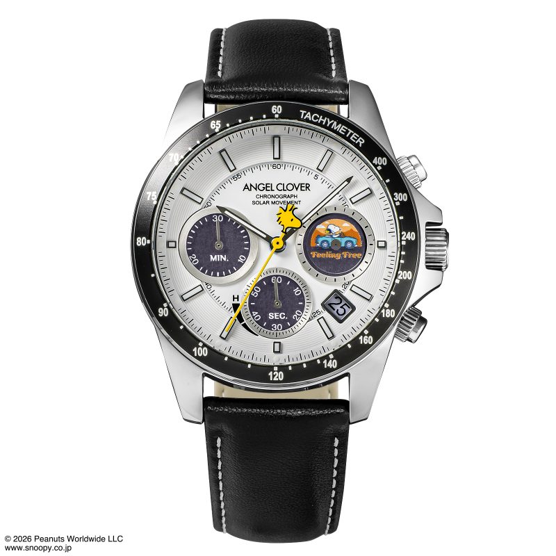 3時位置の24時間表示ではドライブを楽しむ、スヌーピーとウッドストックのイラストが時間と共に動きます。