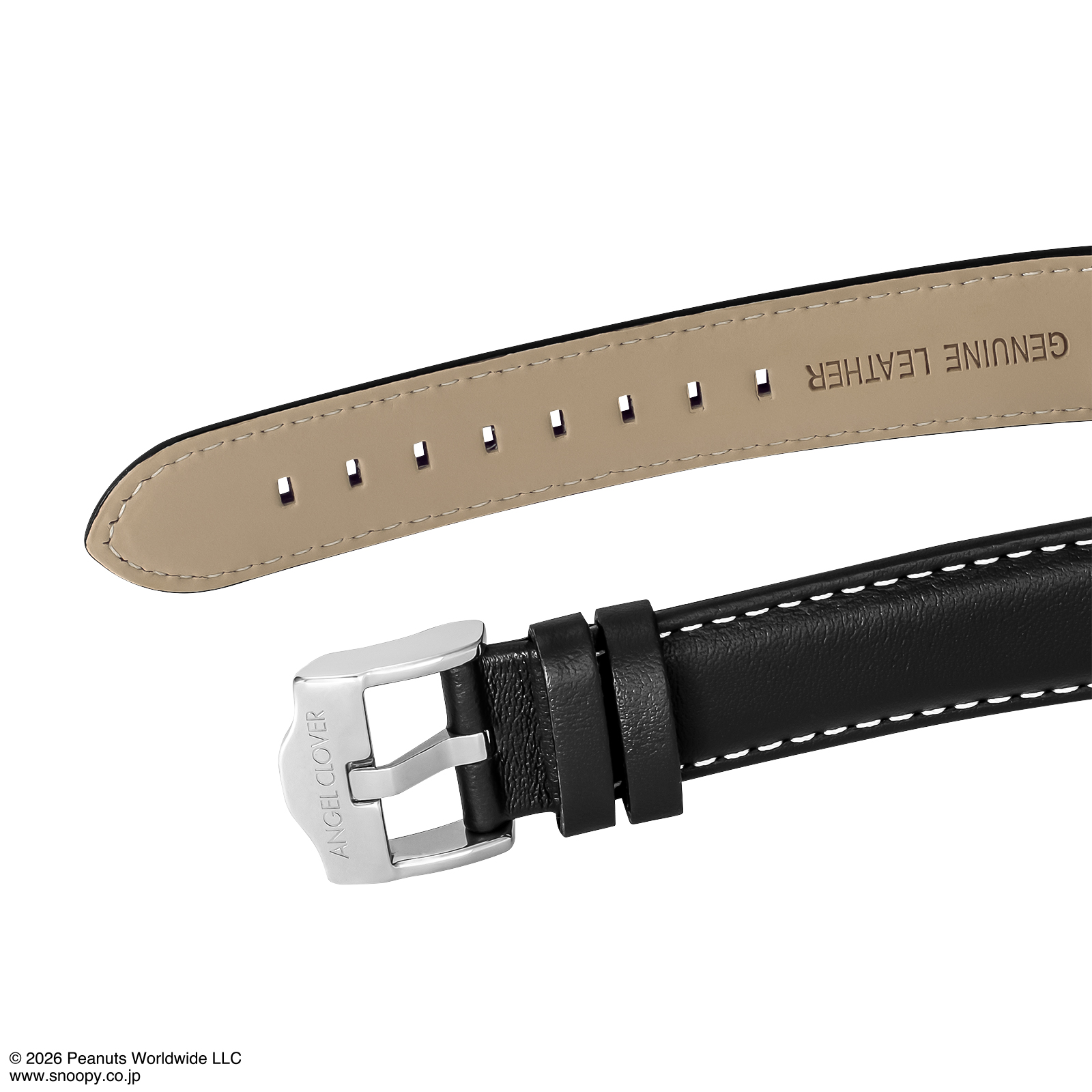 ベルトにはしなやかで肌なじみの良いカーフレザーを採用。使い始めから柔らかく、腕に自然と馴染む心地よさが魅力です。クラシックなデザインと呼応する上質な素材感により、キャラクター時計にありがちなチープさを感じさせない、大人に相応しい一本へと仕上げています。